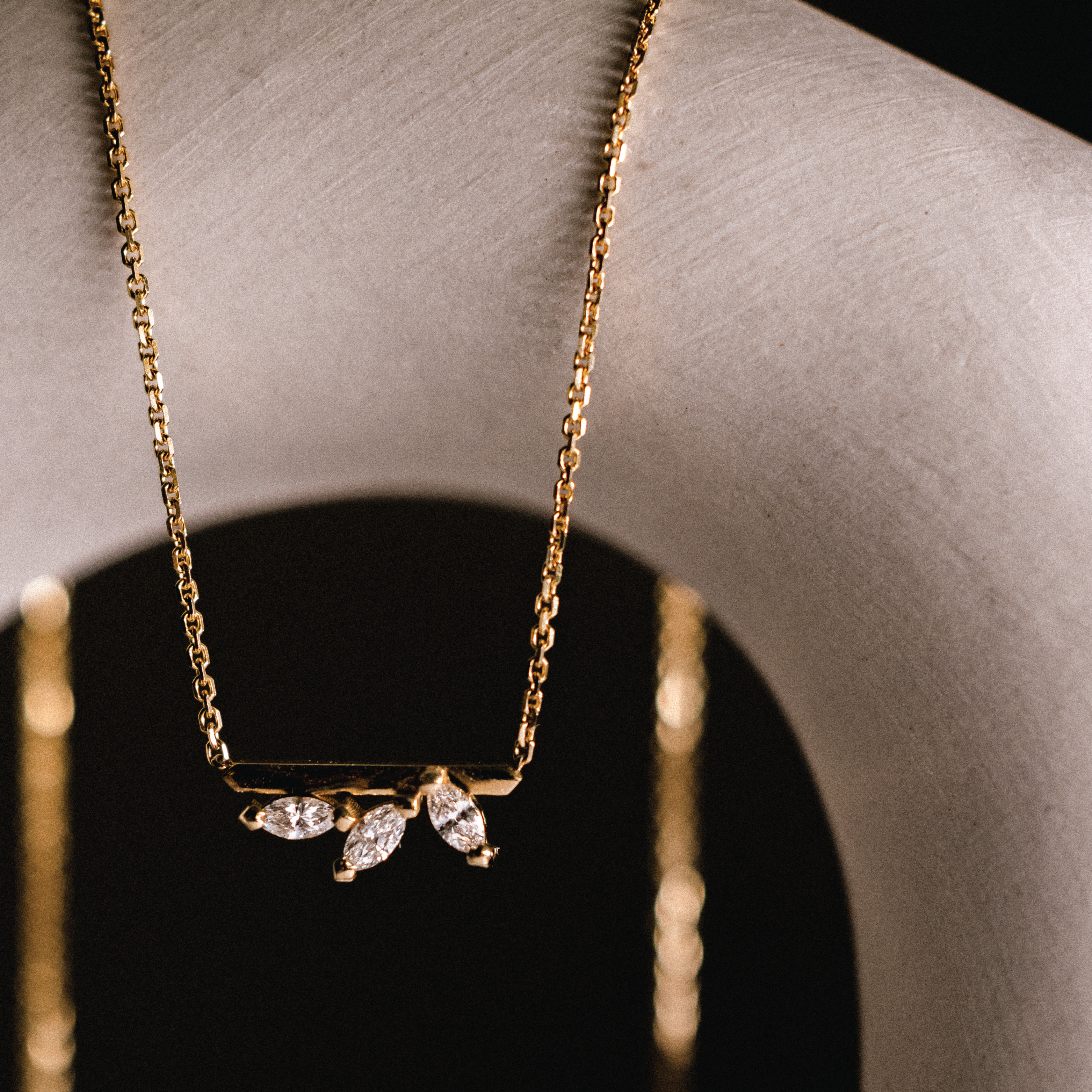 כל פריט בקולקציה מעוצב בקפידה בשילוב הרמוני של זהב ויהלומים, ובעיצובים הנראים כאילו הם נמתחים ומעוקלים כמו צורות גמישות.