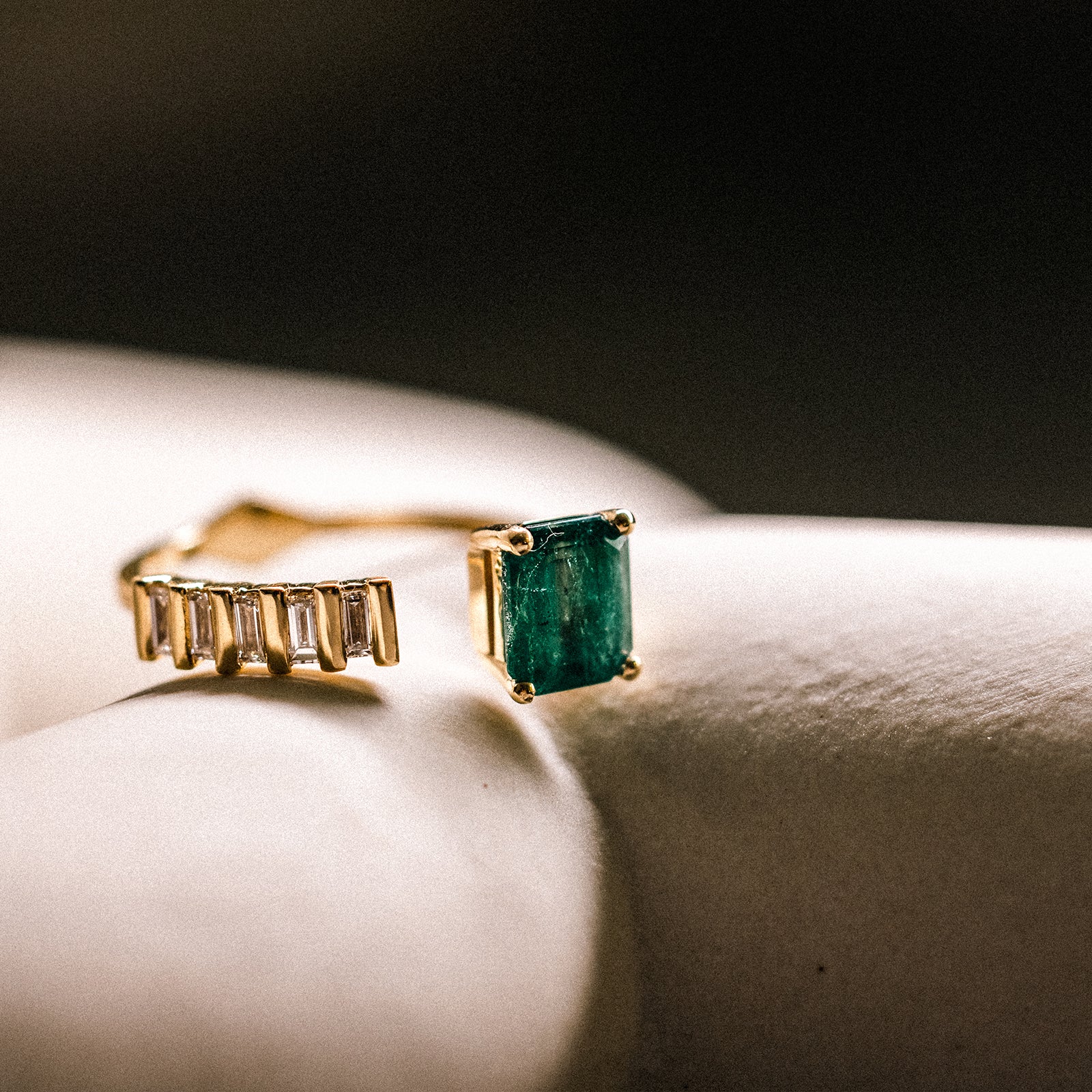 Le Pyramid | טבעת יהלום באגט ופאווה