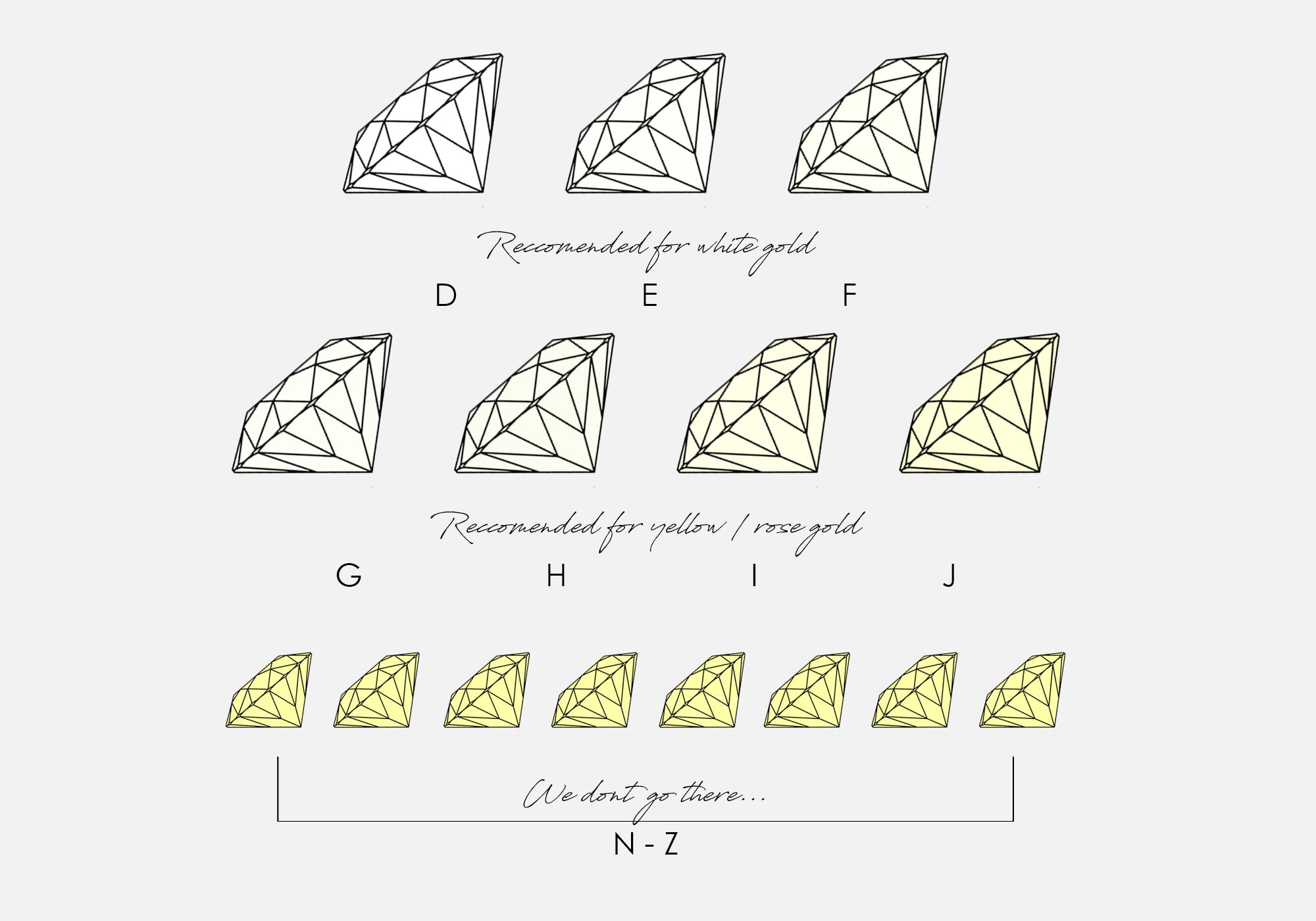 יהלומים בדירוג H-J: יגיעו בגוון צהבהב ויתאימו לזהב צהוב.