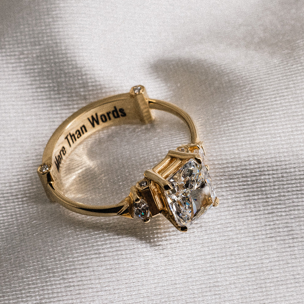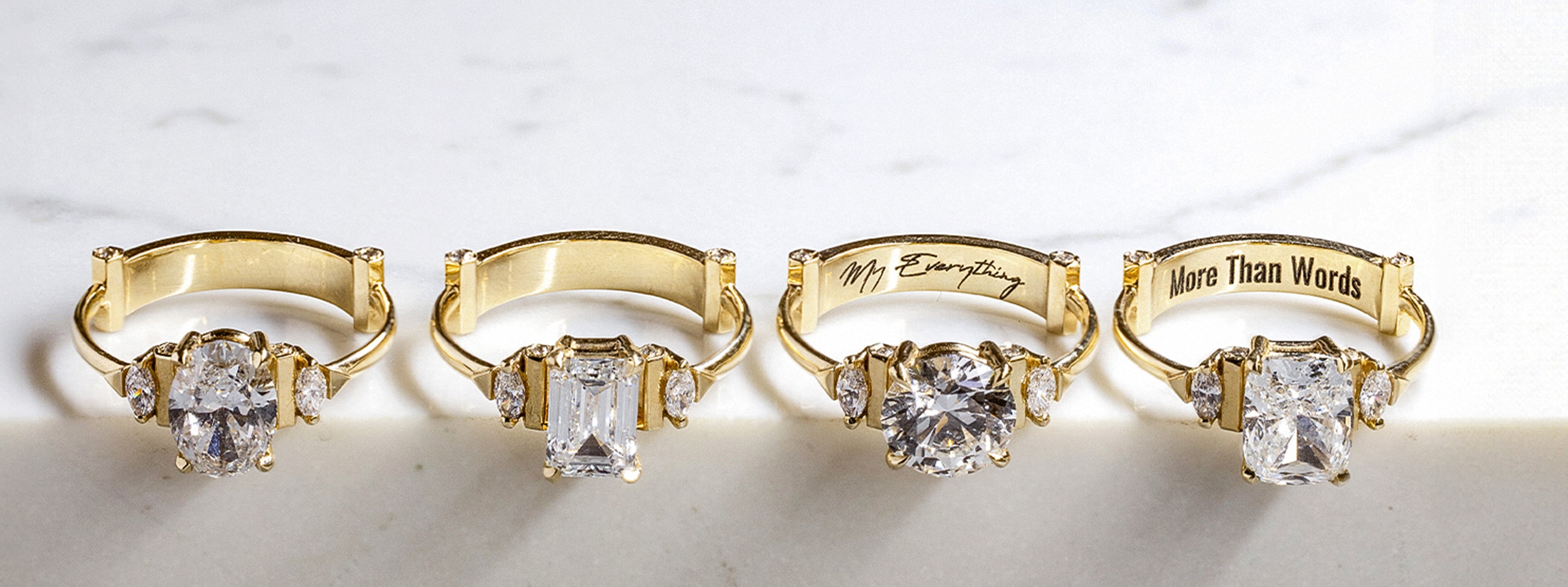 יצרנו אזור ייעודי בצורת מעוין בחלקן האחורי של כל הטבעות שלנו, שמעטר את פנים-היד, בו ניתן לחרוט כל מה שעולה על דעתך: תאריך, מילה, שם, או אפילו אפשרות לשיבוץ אבן קטנה.
