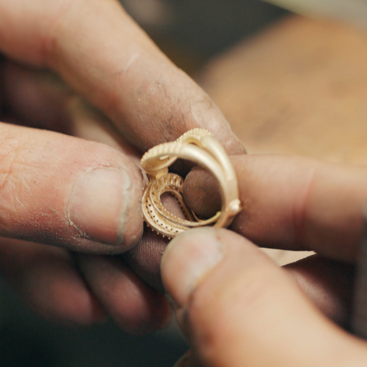 העבודות שלנו כולן נעשות בעבודת יד - התהליך כולל מספר שלבים של צורפות שיבוץ והרכבות למיניהם, עד לתכשיט המוגמר.