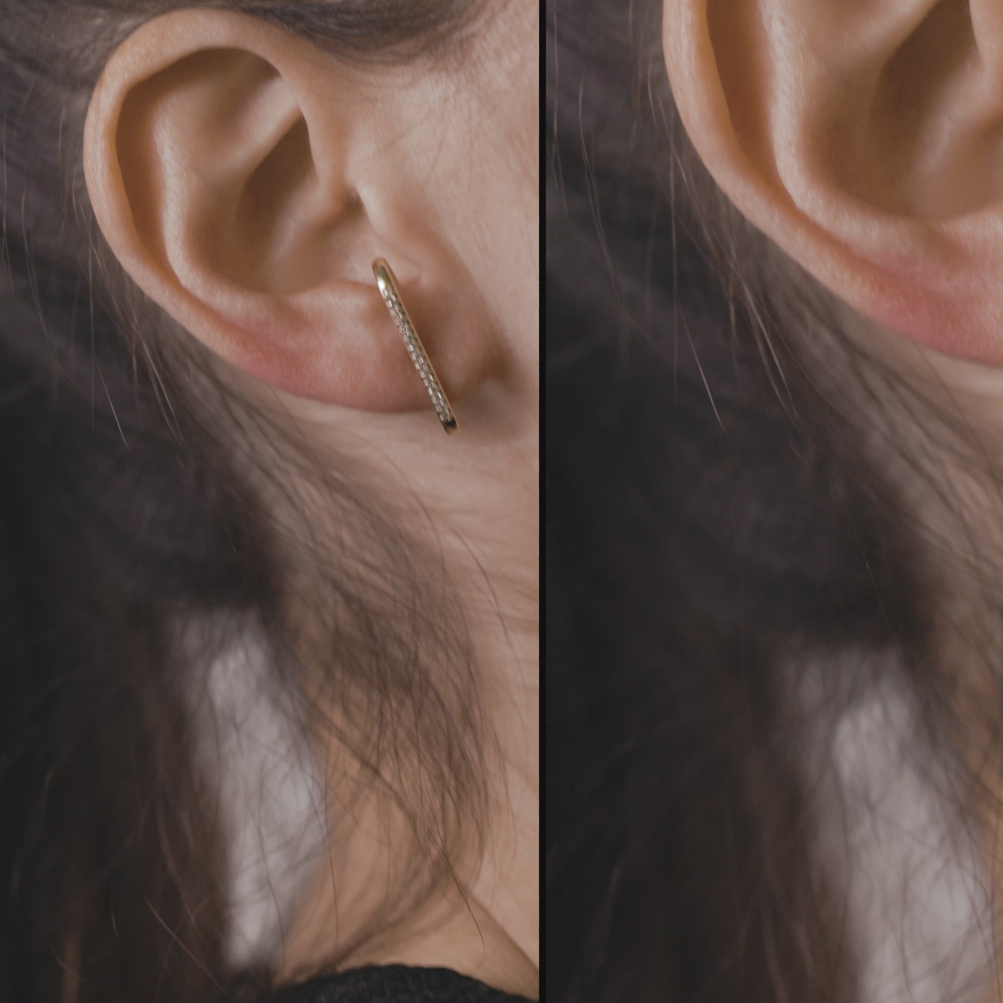 עגיל חבק, נמכר כבודד ונתפס בחור הרגיל של האוזן. העגיל מתישב ממש מעל התנוך כמו מקל סבא, מעניק מראה של סיכה מעניינת, ומייצר הפרדה יפהפיה בין החורים. במידה ויש מספר חורים באוזן - אנחנו ממליצות לענוד אותו בחור מספר 2 או 3.