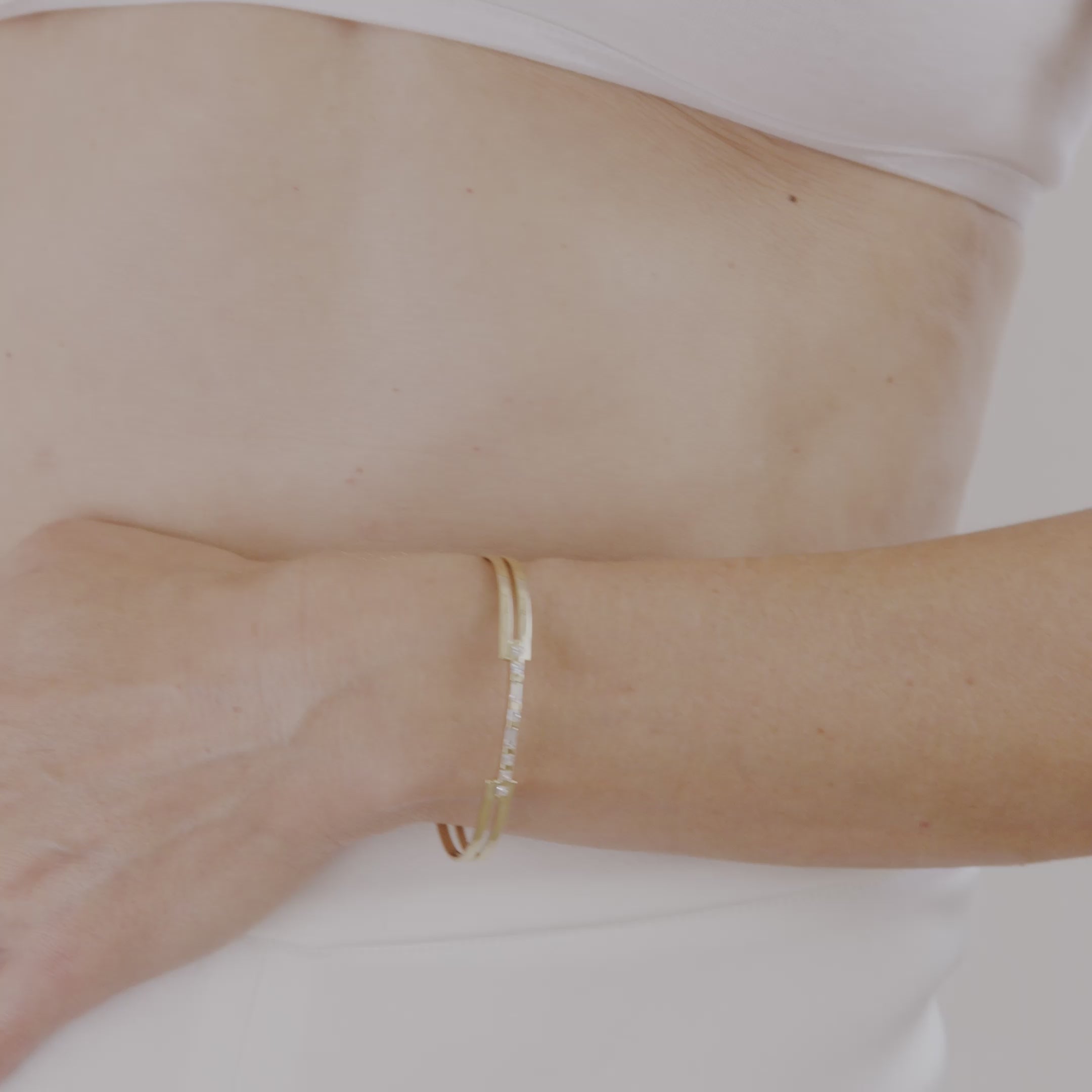 צמיד בעיצוב יפיפה.ובעל נוכחות מרשימה ובולטת. מנצנץ ובוהק, ומשובץ ביהלומי באגט ויהלומים. עגולים.