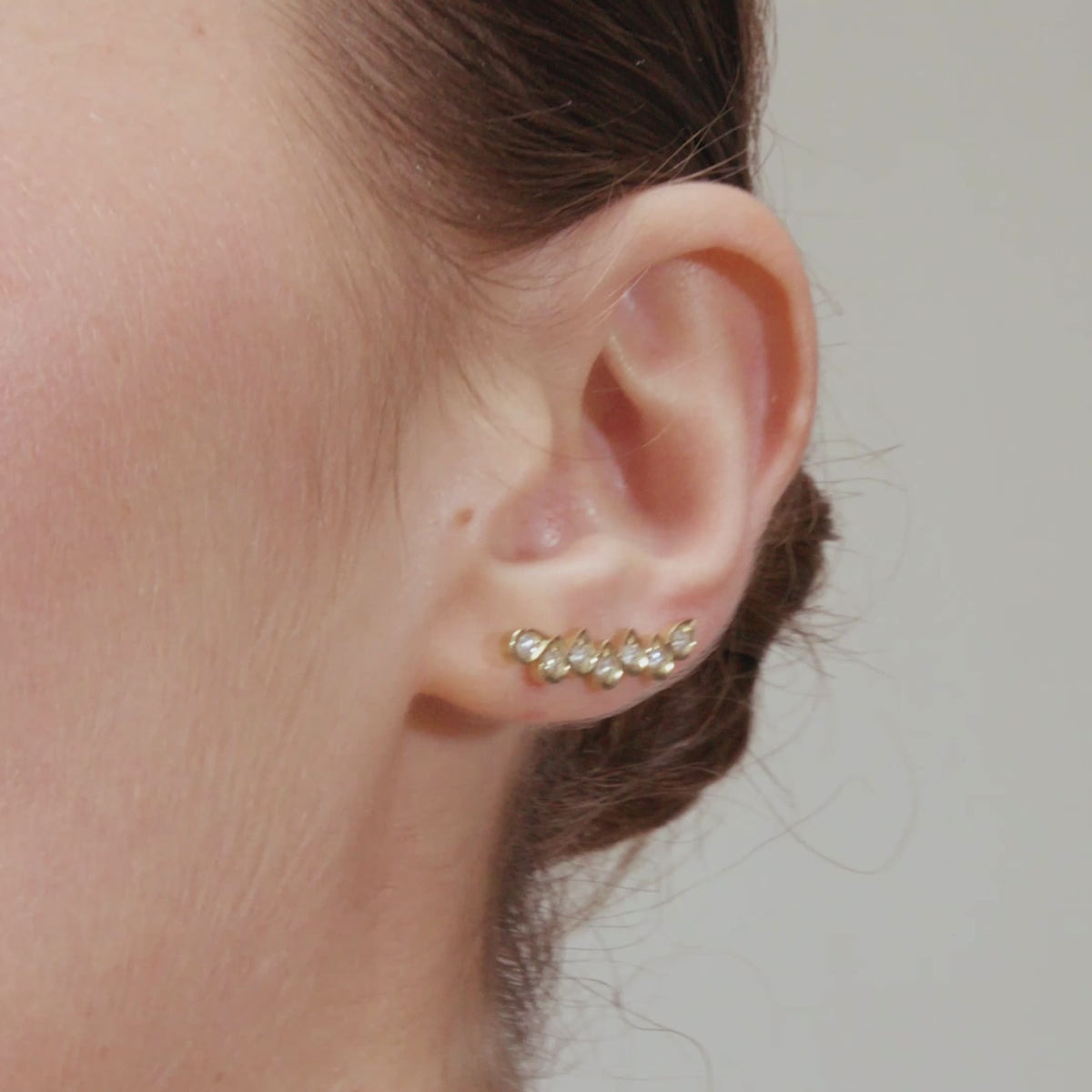 עגיל מטפס היסטרי משובץ יהלומים. נוכחות משוגעת על התנוך.