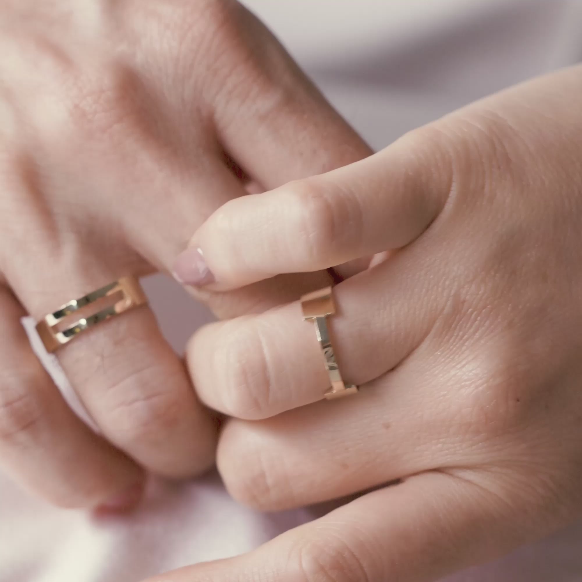 טבעות זוגיות המשתלבות יחד, ומעוצבות בהתאמה מושלמת זו לזו.