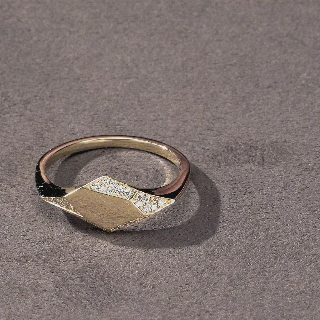 טבעת גיאומטרית עם התלקחות יפהפייה של יהלומי פאווה.