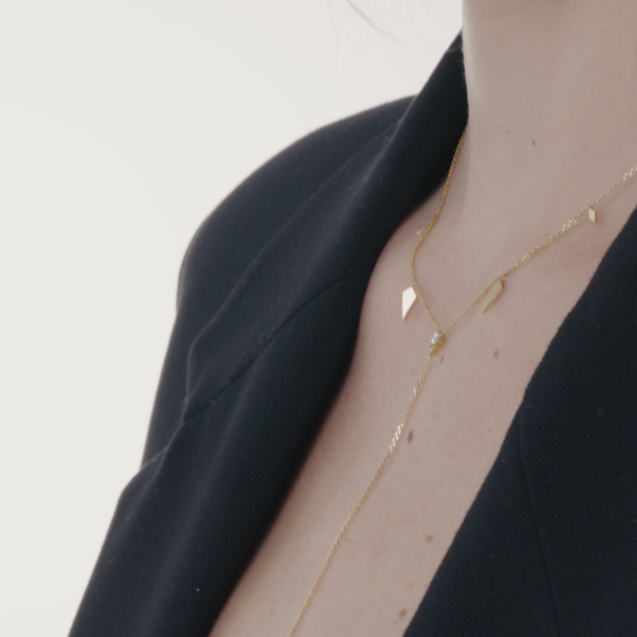 שרשרת עניבה סקסית משובצת יהלום מנצנץ במרכז ואלמנטים צדדים למראה מלא עניין וסטייל.