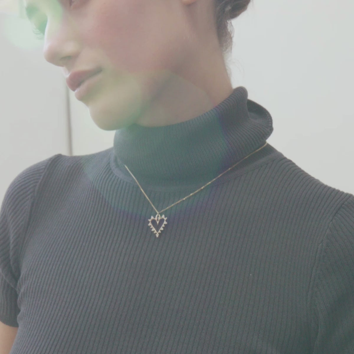 שרשרת קמע בצורת לב משובץ יהלומים סביבו.