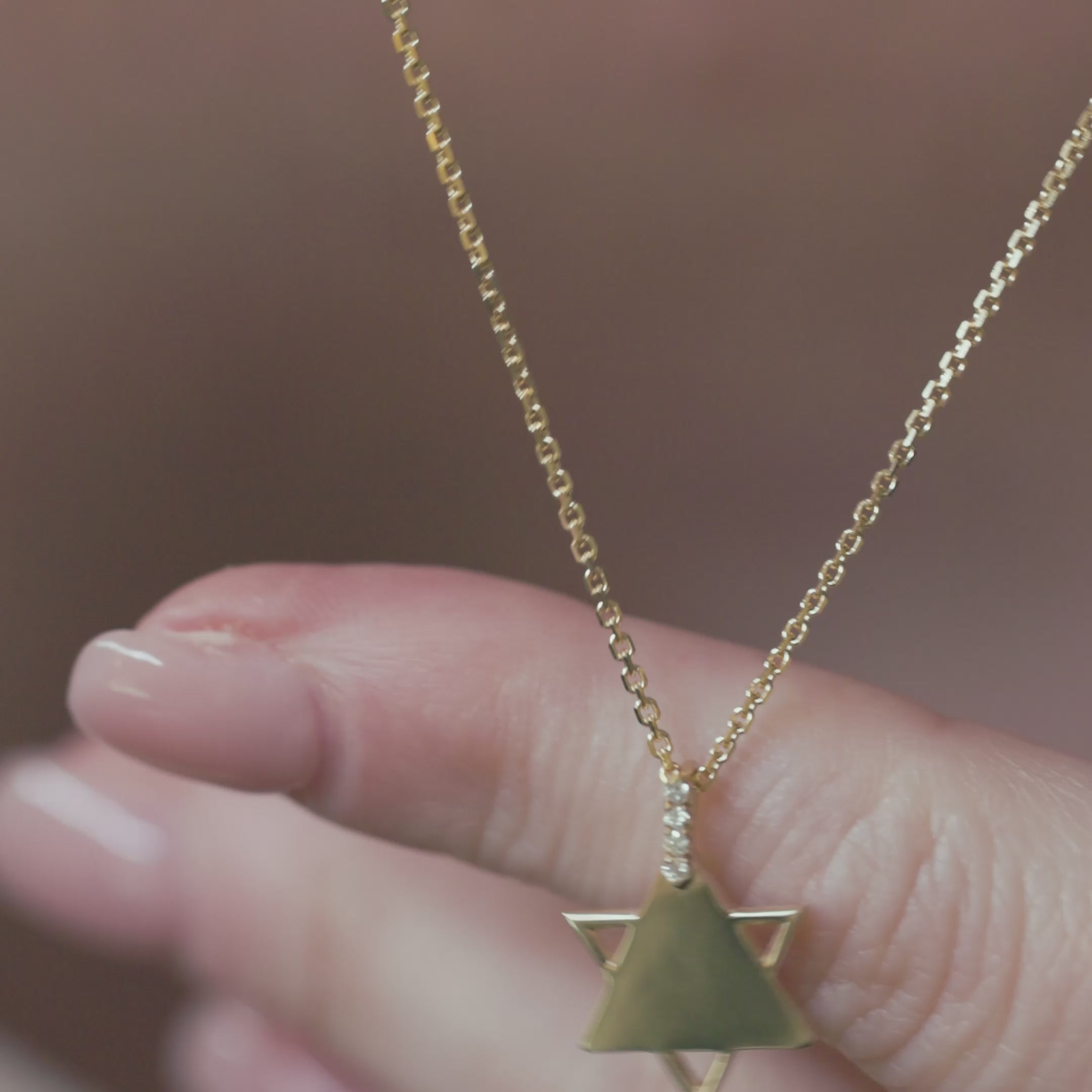 תליון בצורת מגן דוד, עם מתלה ייחודי משובץ יהלומים.