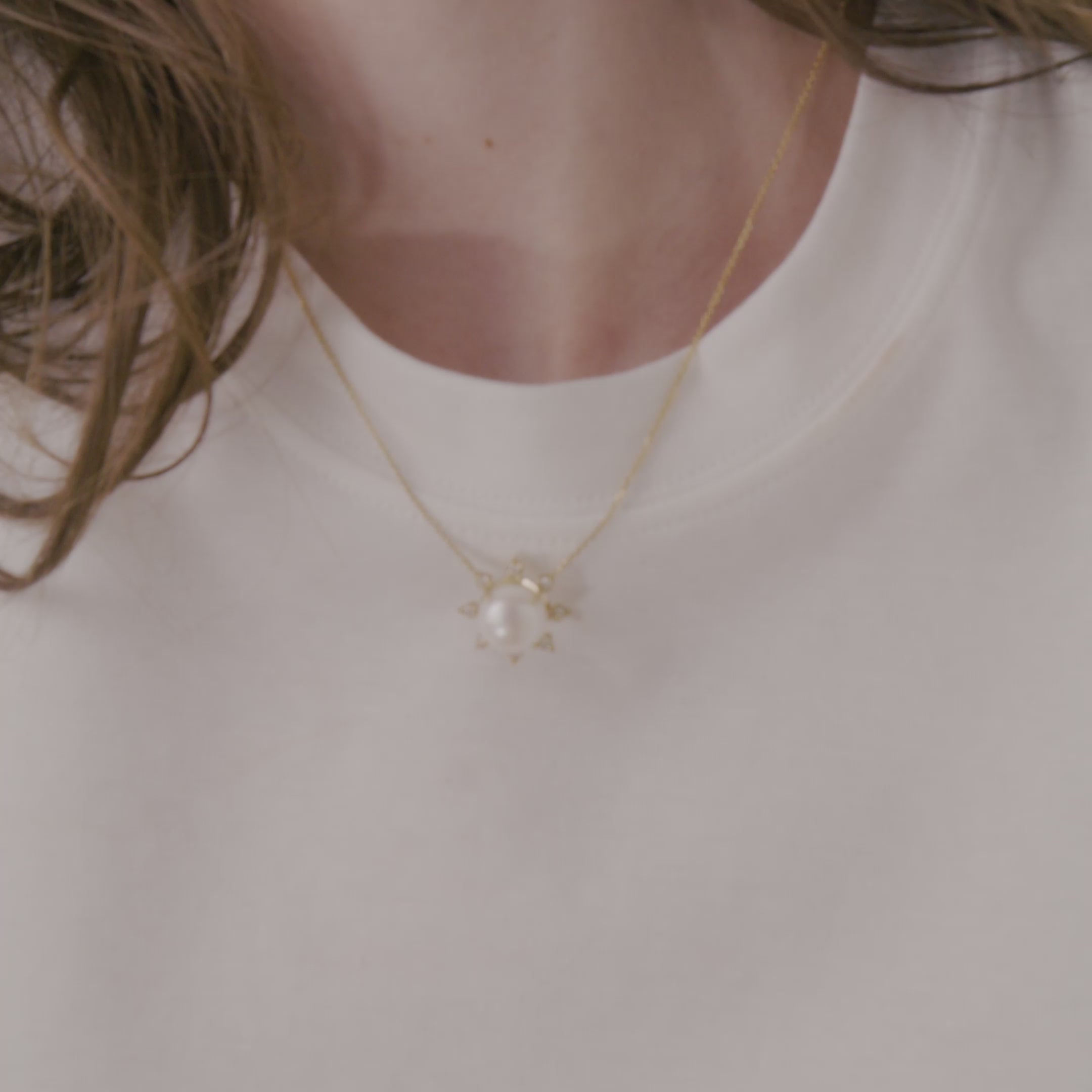 שרשרת עדינה עם אלמנט משובץ פנינה ויהלומים.