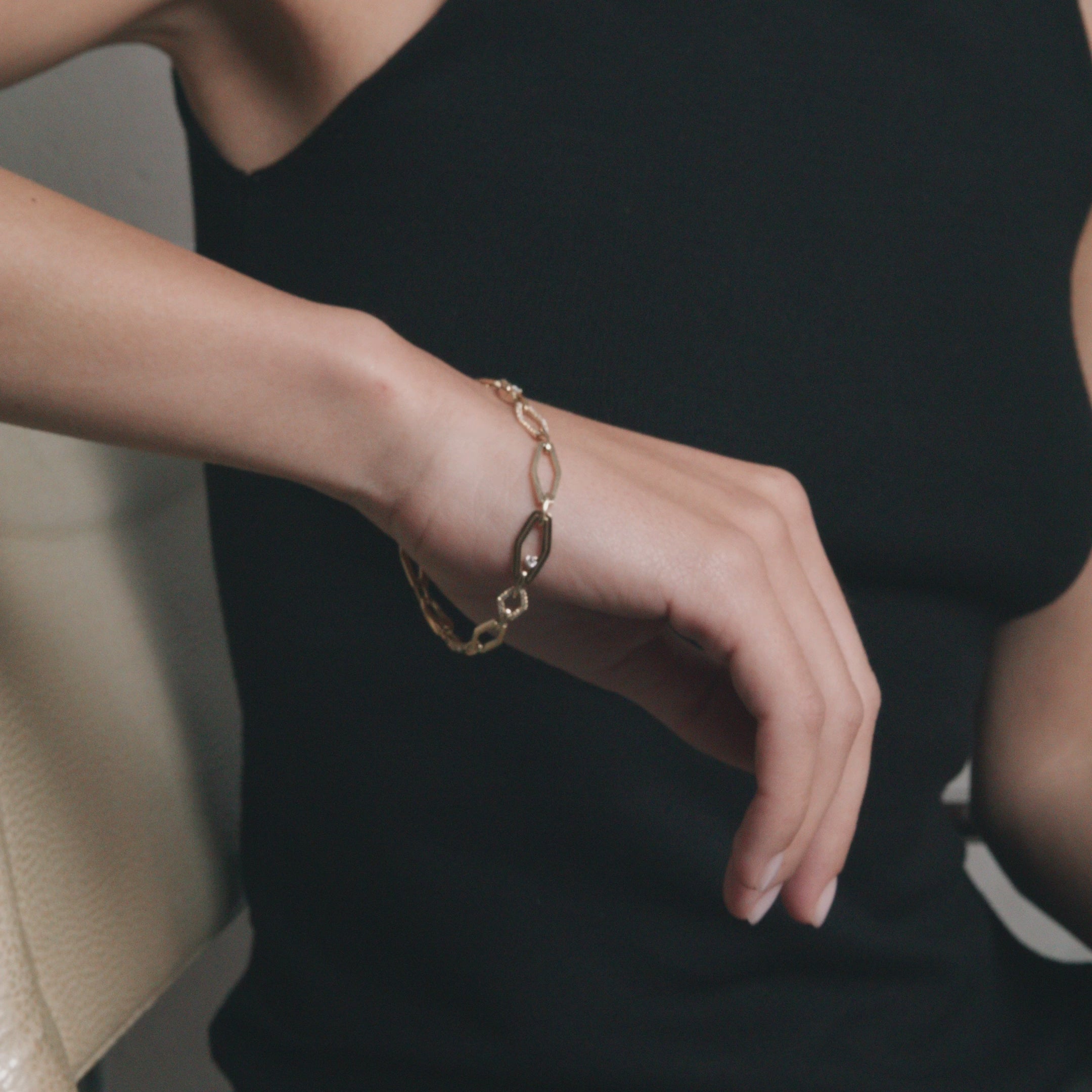 ֿצמיד חוליות מהמם ביופיו משובץ יהלומים מנצנצים . הצמיד נסגר עם מנעול מוסתר למראה מתוחכם ואלגנטי.