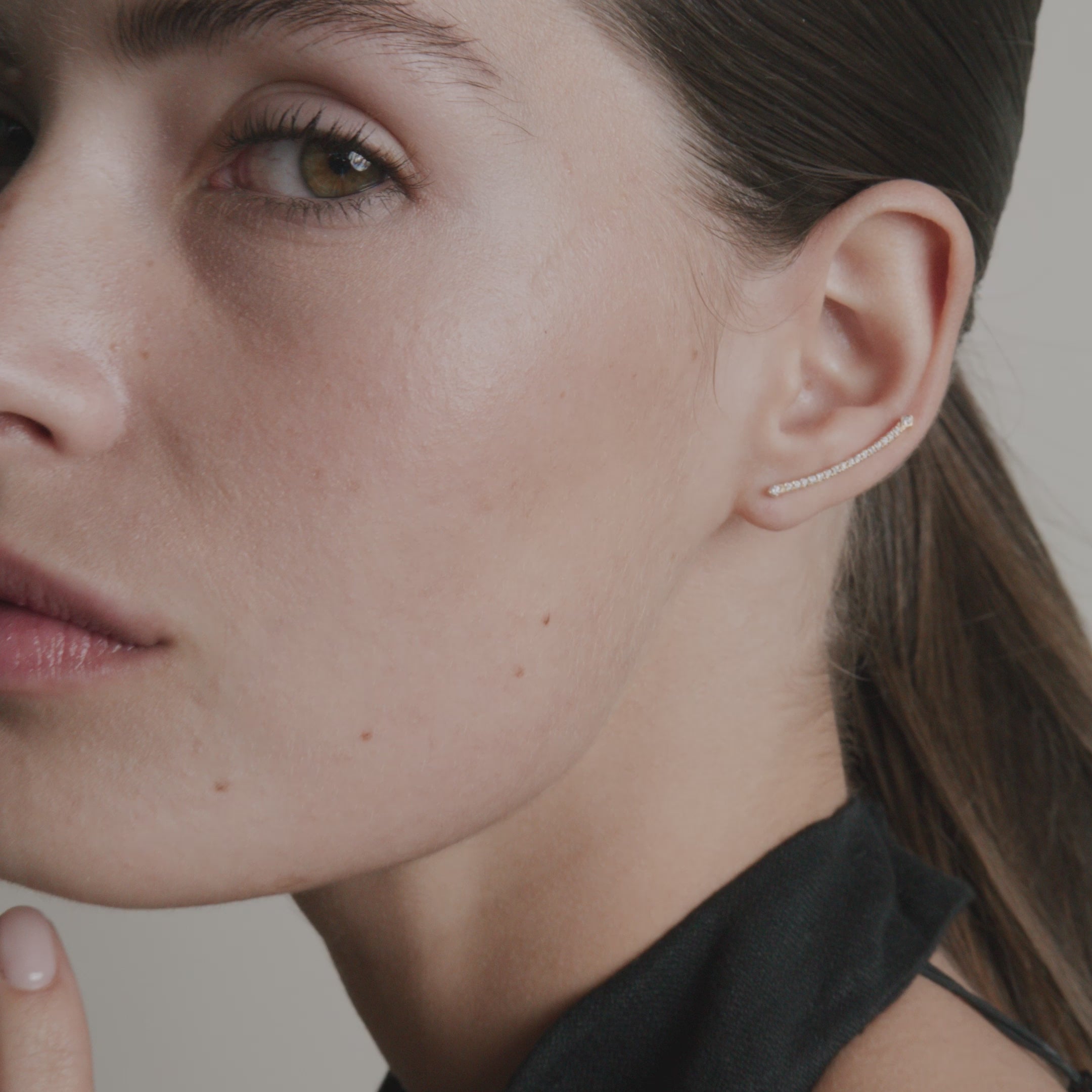 עגיל מטפס מטריף - דקיק ומלא יהלומים, ארוך בדיוק במידה הנכונה כדי למלא את כל תנוך האוזן.
