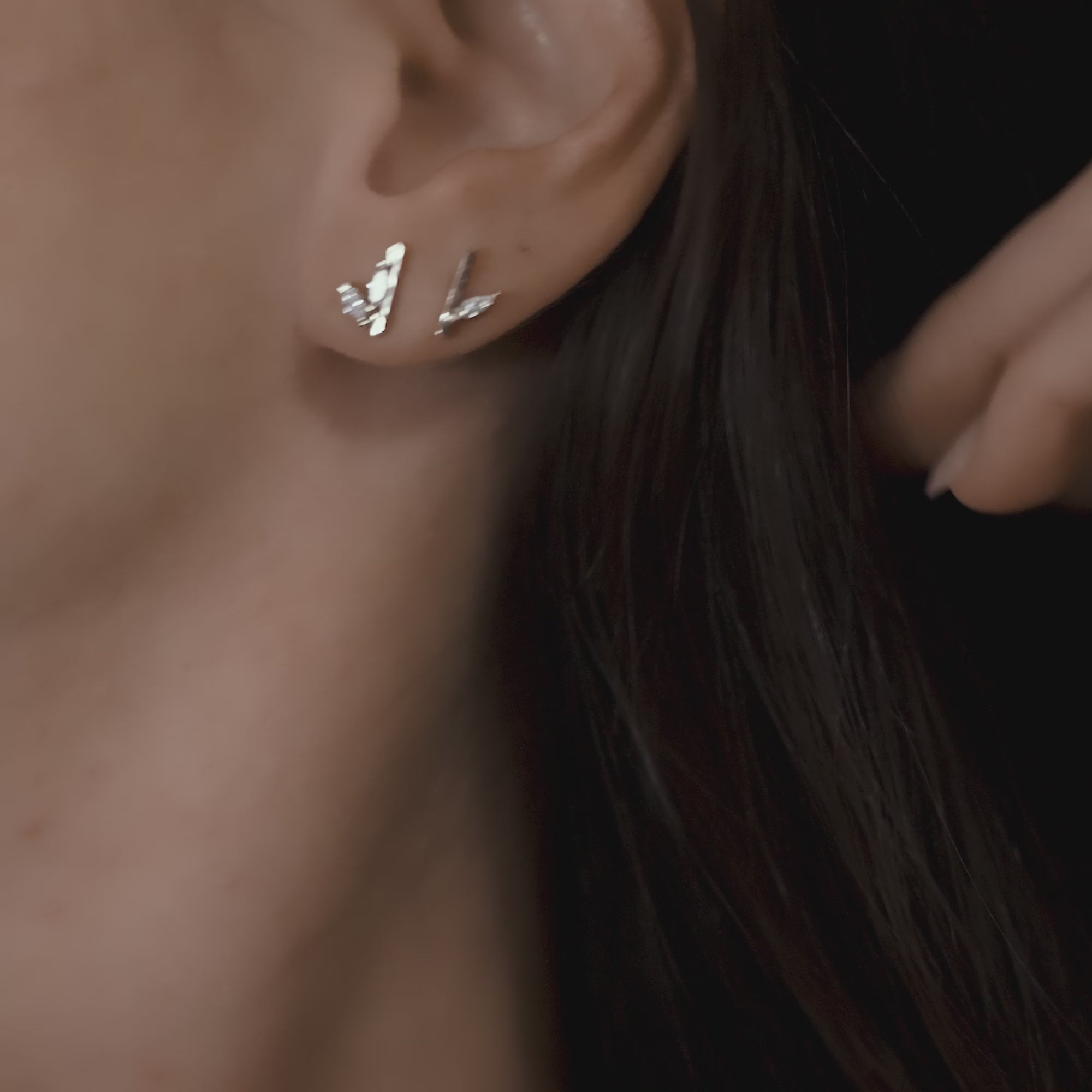 עגילי יהלום צמודים משובצים יהלומים בצורת מרקיזה זה לצד זה.