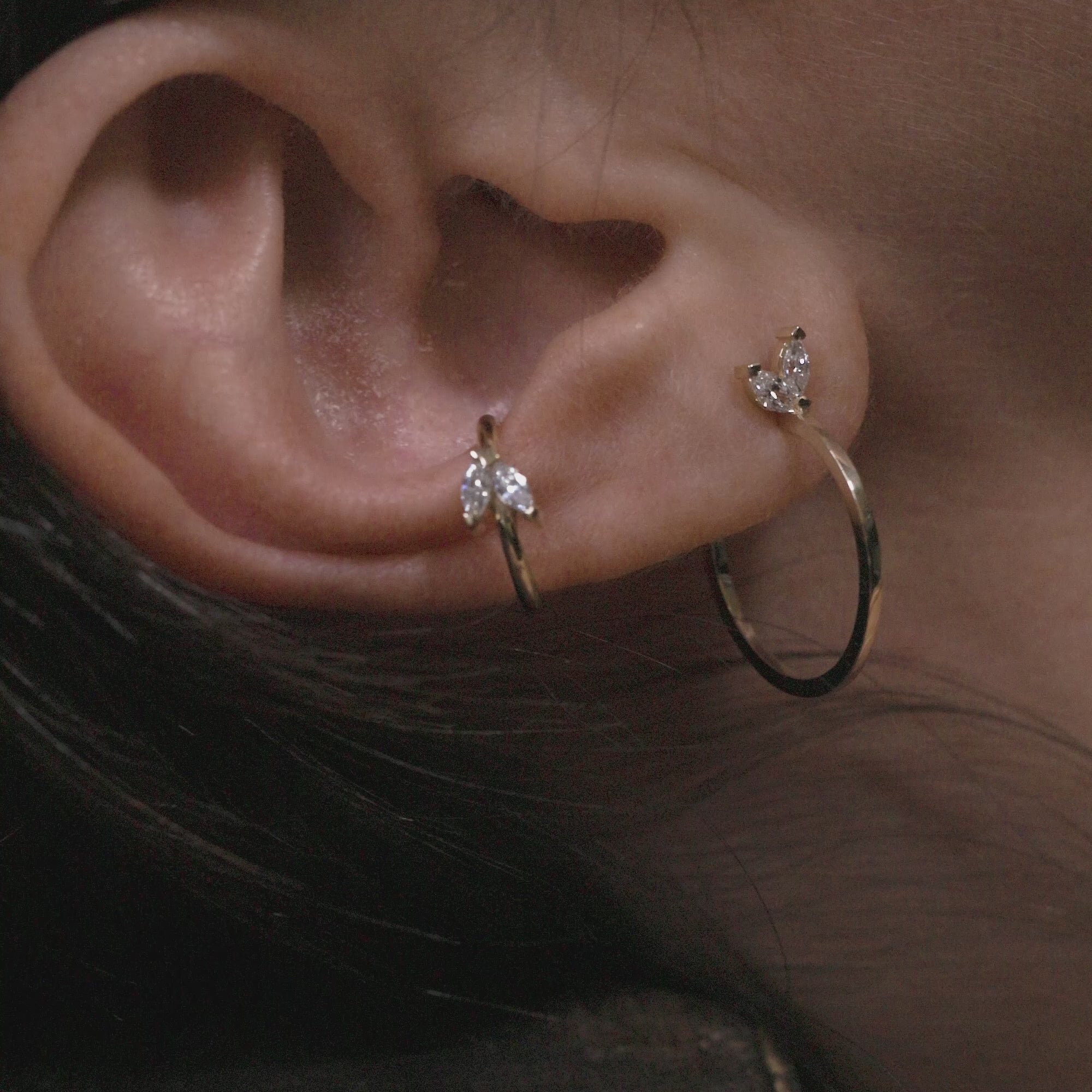 יהלומי מרקיזה משובצים זה לצד זה על גבי חבק זהב.