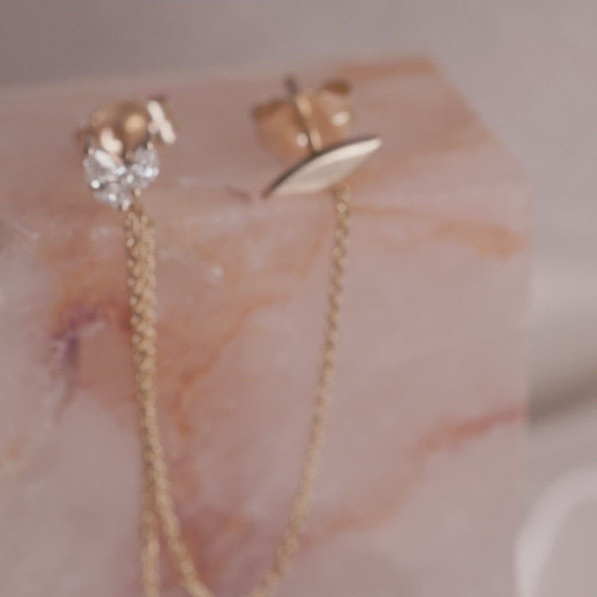 עגיל ארוך בעל מראה אלגנטי ומתוחכם המתאים לשני חורים.משובץ ביהלומי מרקיזה מנצנצים ויפים ושרשרת עם תנועתיות מרשינה.