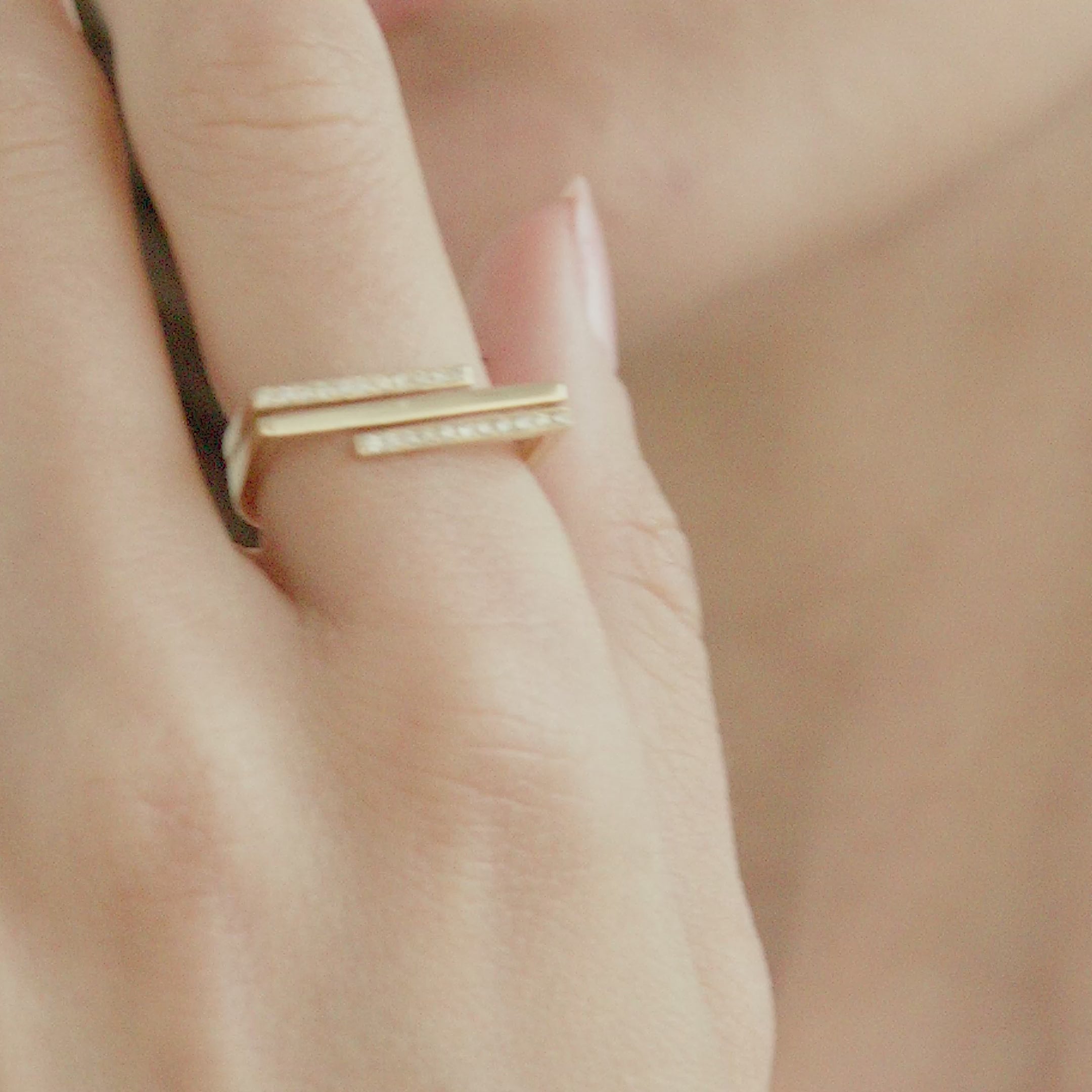 טבעת מעוצבת וגיאומטרית בעלת שלושה קווים מלבניים.