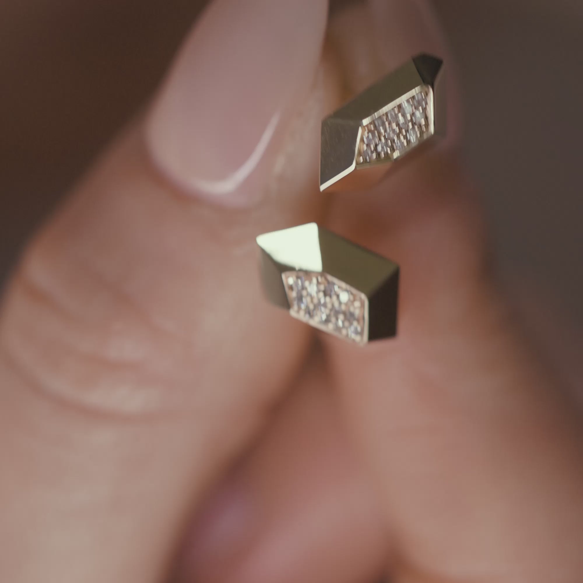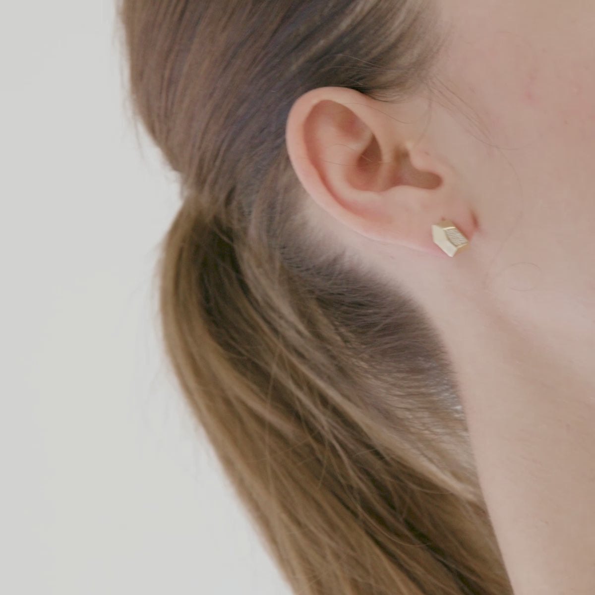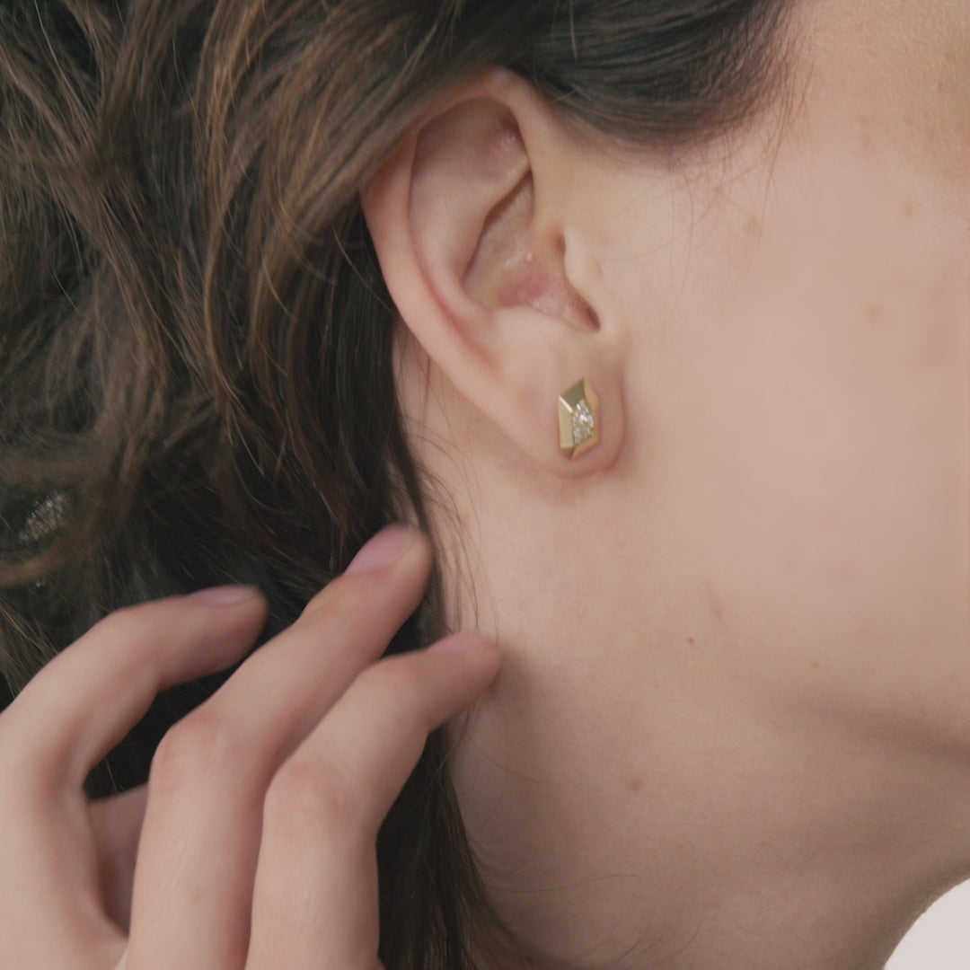 עגילים במראה גושני, סלעי, נוצצים על גבי התנוך.