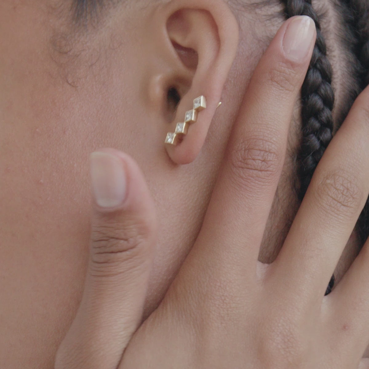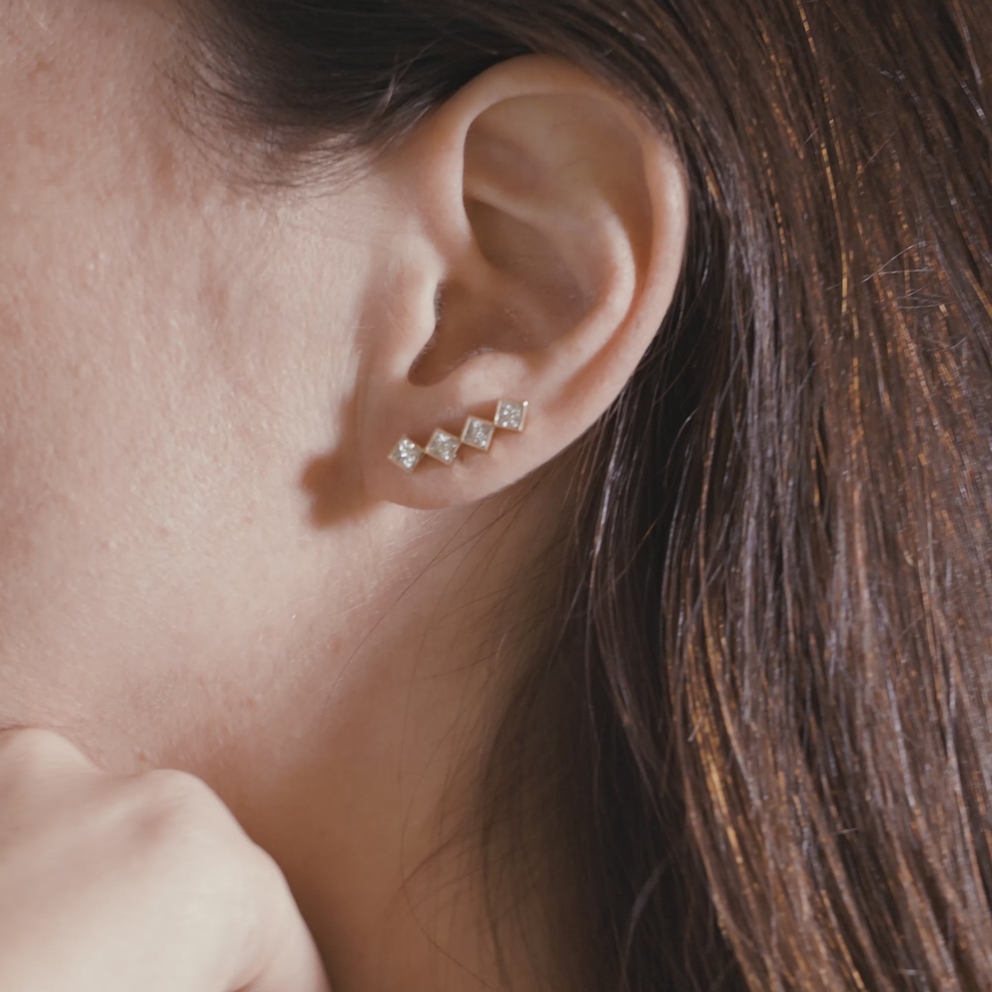עגיל מטפס משובץ ארבעה יהלומים בחיתוך פרינסס.