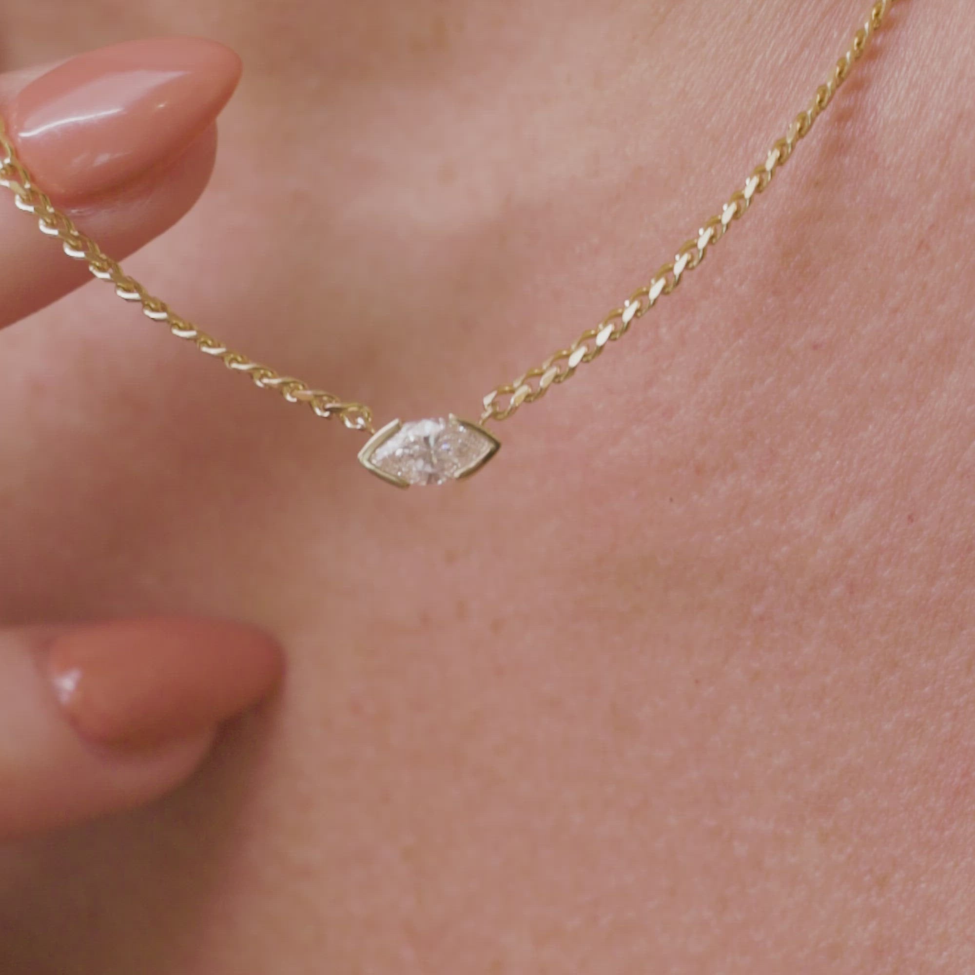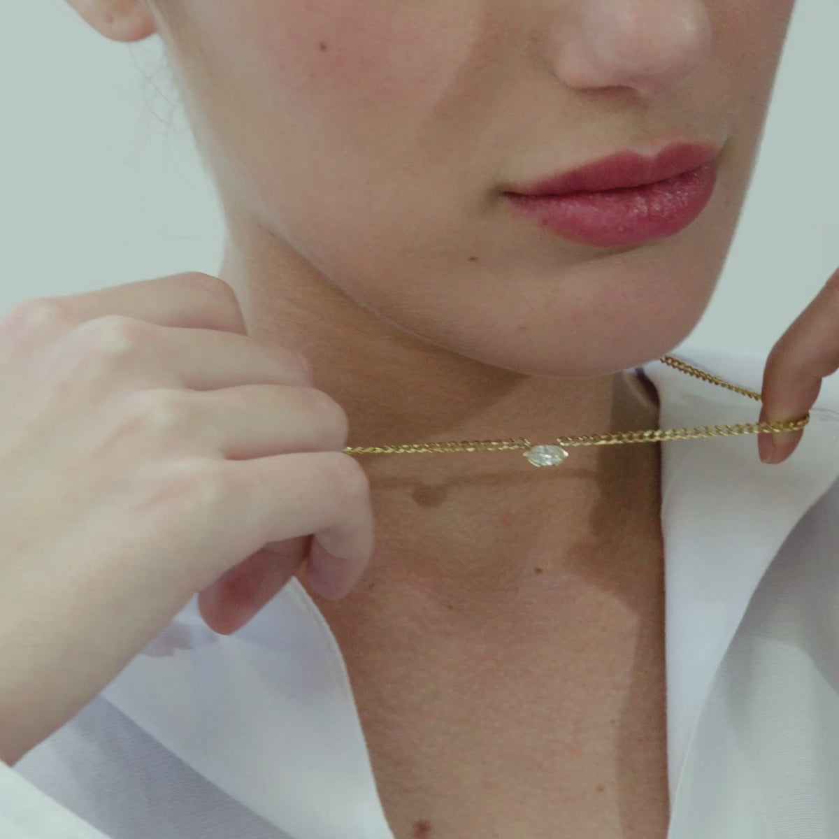 שרשרת מרסקת עם יהלום בחיתוך מרקיזה. מדהימה ובעלת נוכחות, עם נצנוץ יפהפה והמון אלגנטיות ואיפוק.