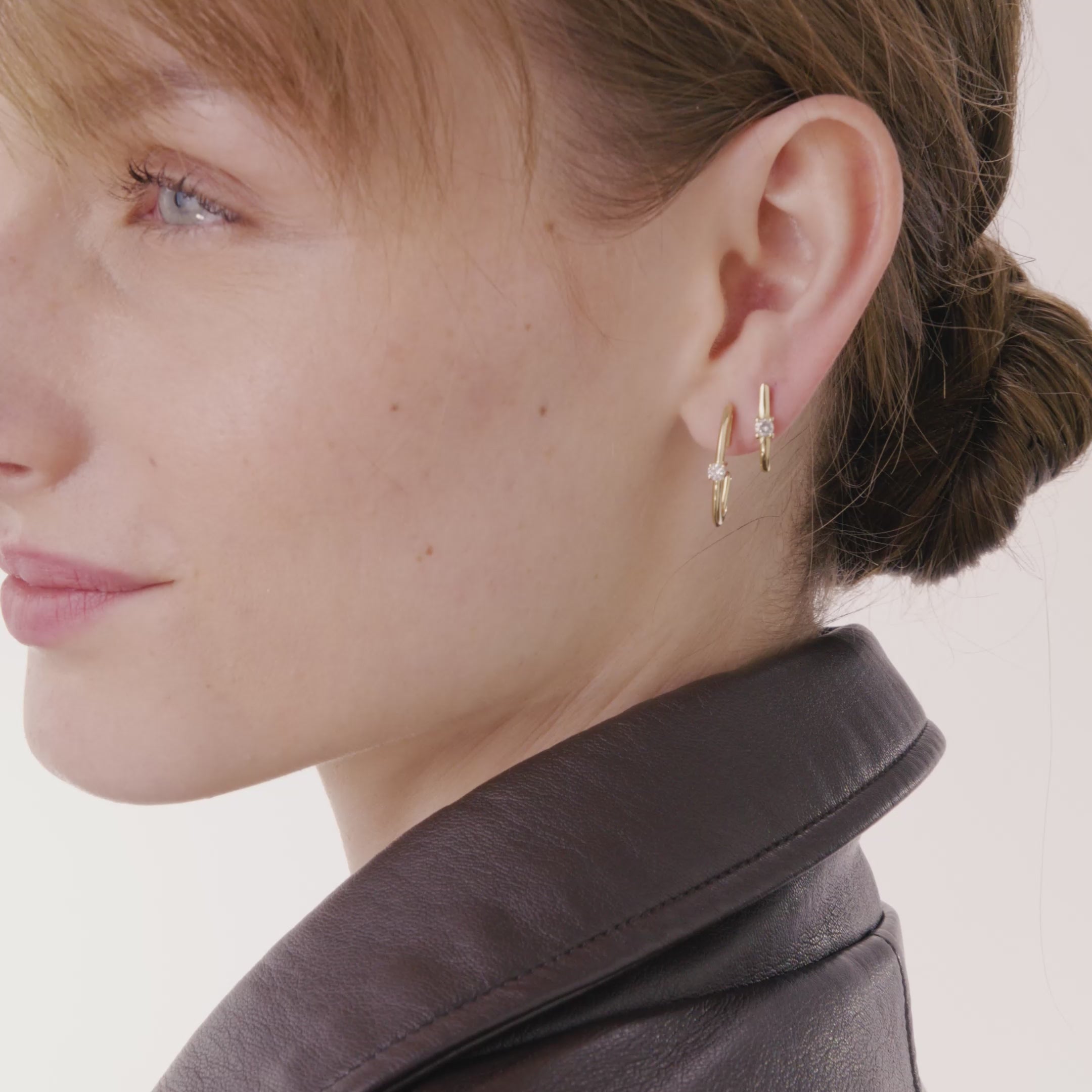 עגילים כייפיים ליום יום, משובצים יהלום עגול שנותן להם בדיוק את הברק שצריך.