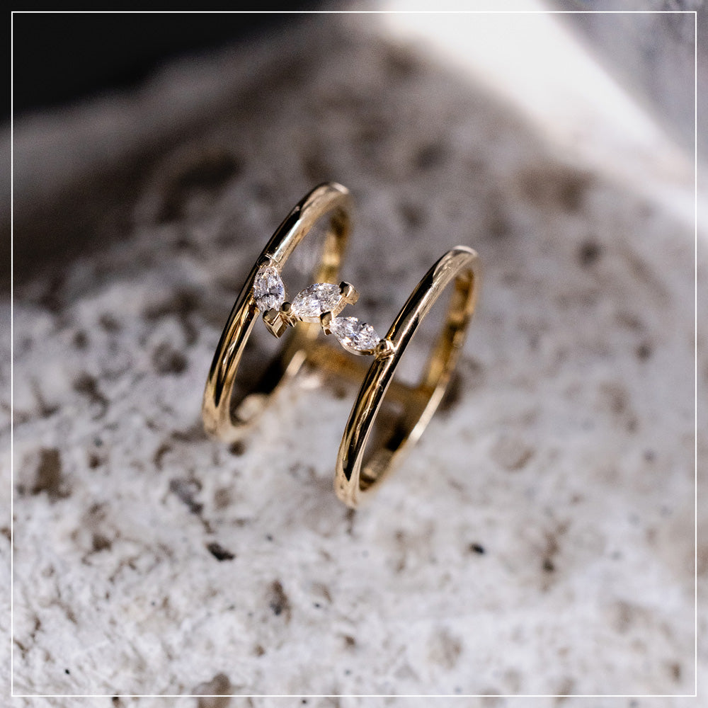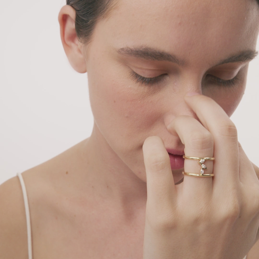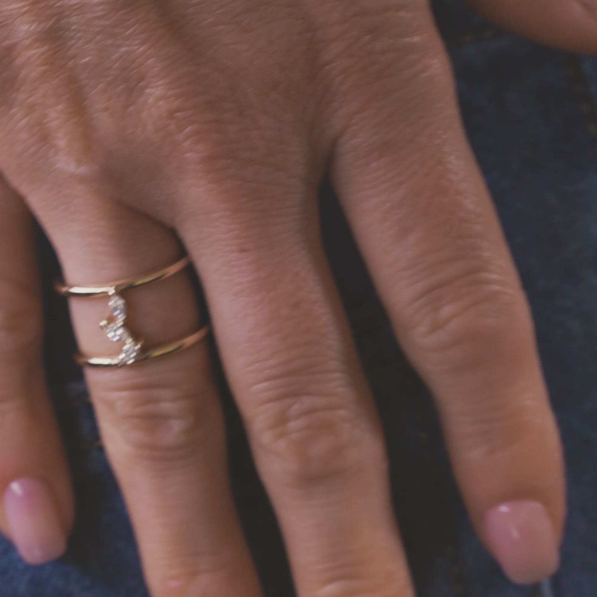 טבעת כפולה בשיבוץ יהלומי מרקיזה' מושלמת לענידה באצבע או באמה. טבעת עם נוכחות יפה ונוצצת.