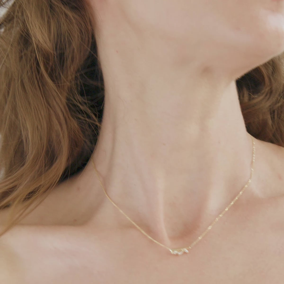 שרשרת עדינה המורכבת יהלומי מרקיזה בליאווט מסובב, משובצים בצורה מרחפת על גבי שרשרת עדינה.