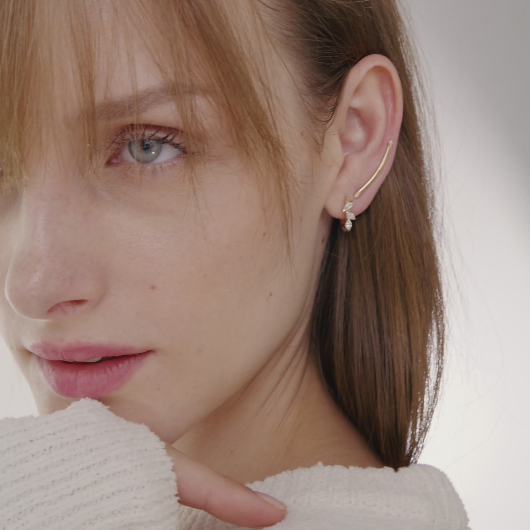 עגילי חישוק צמודים משובצים יהלומים בצורת מרקיזה זה לצד זה.