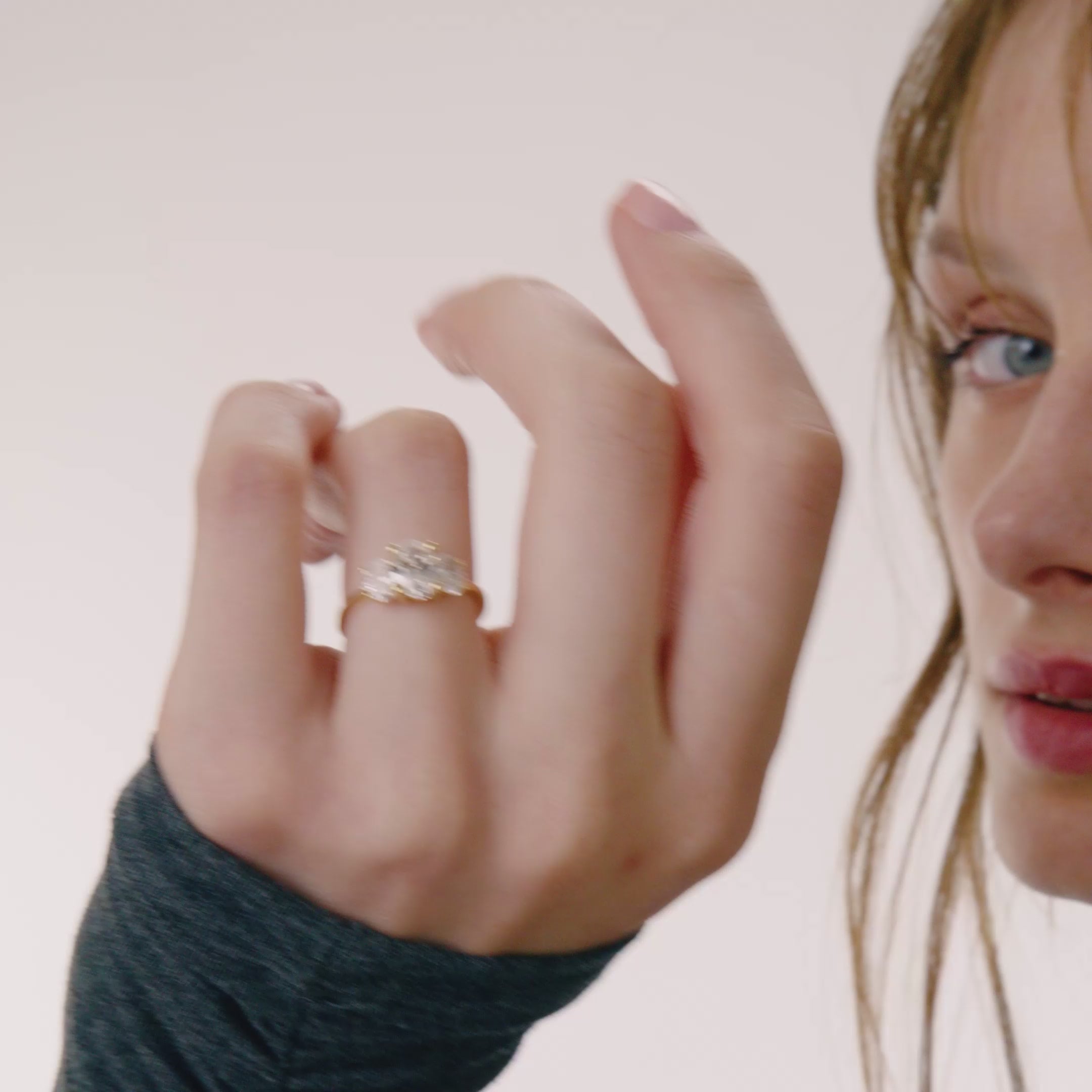 טבעת עם שלושה יהלומים, המרכזית והצדדיות יכולות להיות באותו החיתוך - לקבלת מראה קלאסי, או בשילוב חיתוכים אחרים באבני הצד, למראה יותר מעוצב.