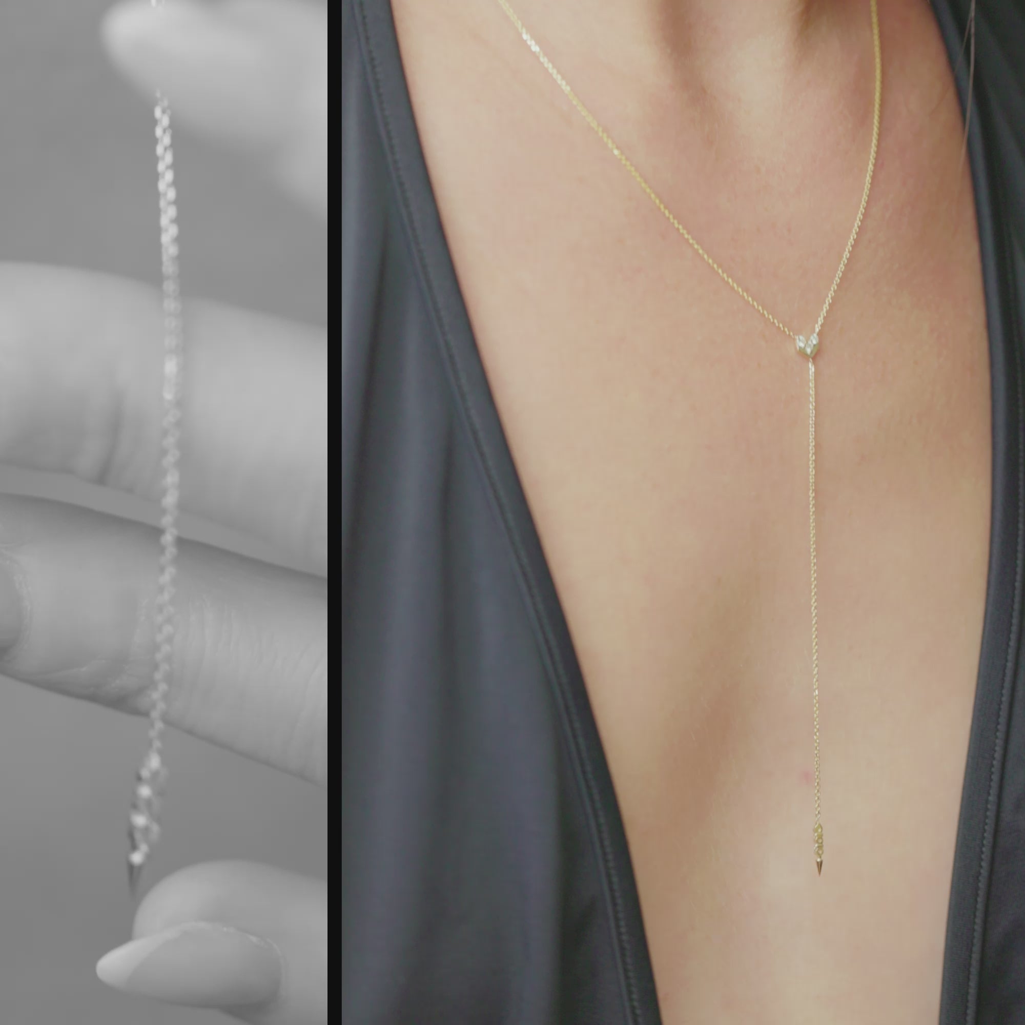 שרשרת עניבה עם אלמנטים משובצים יהלומים, המייצרים נצנוץ עדין וסקסי.