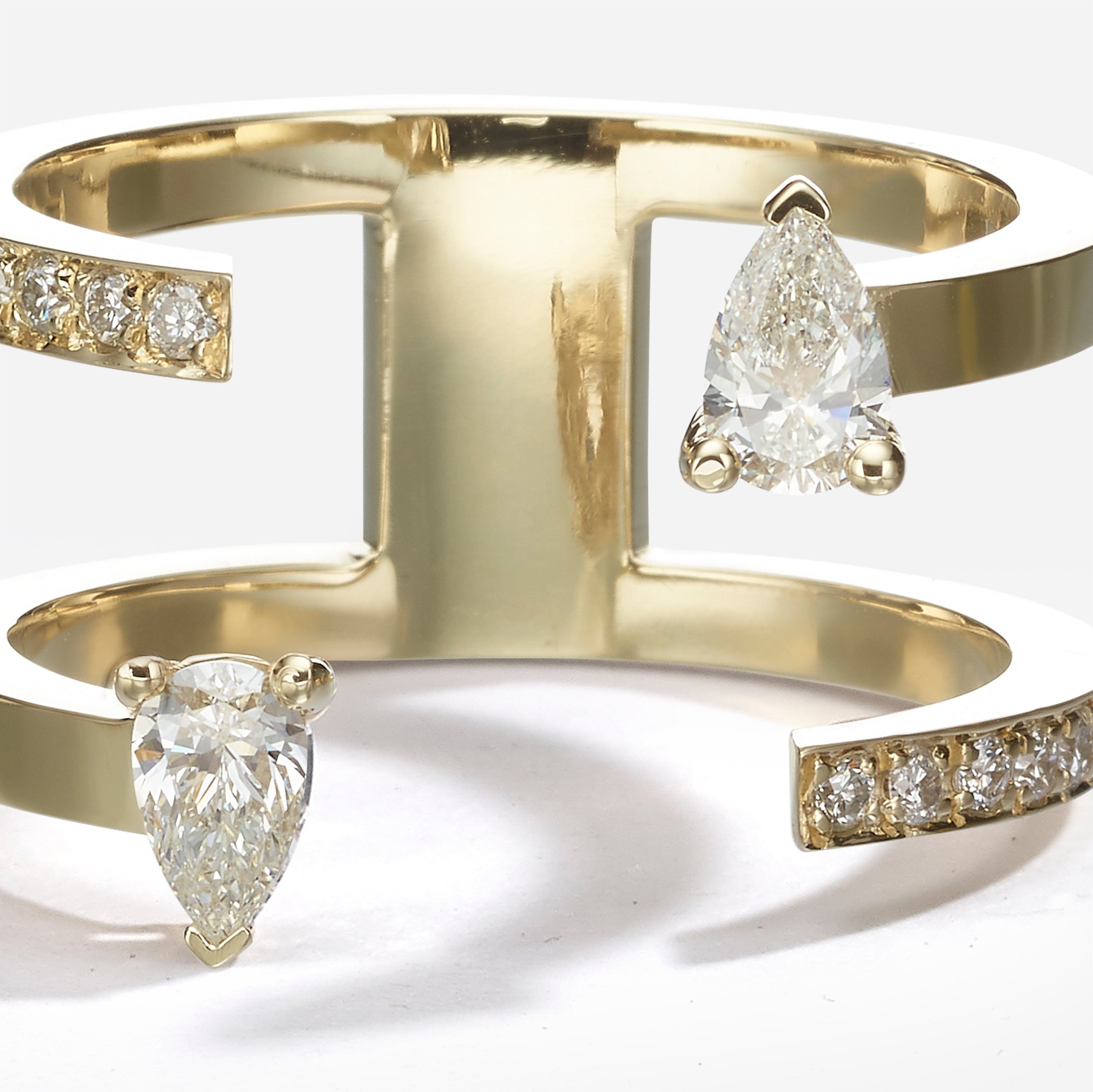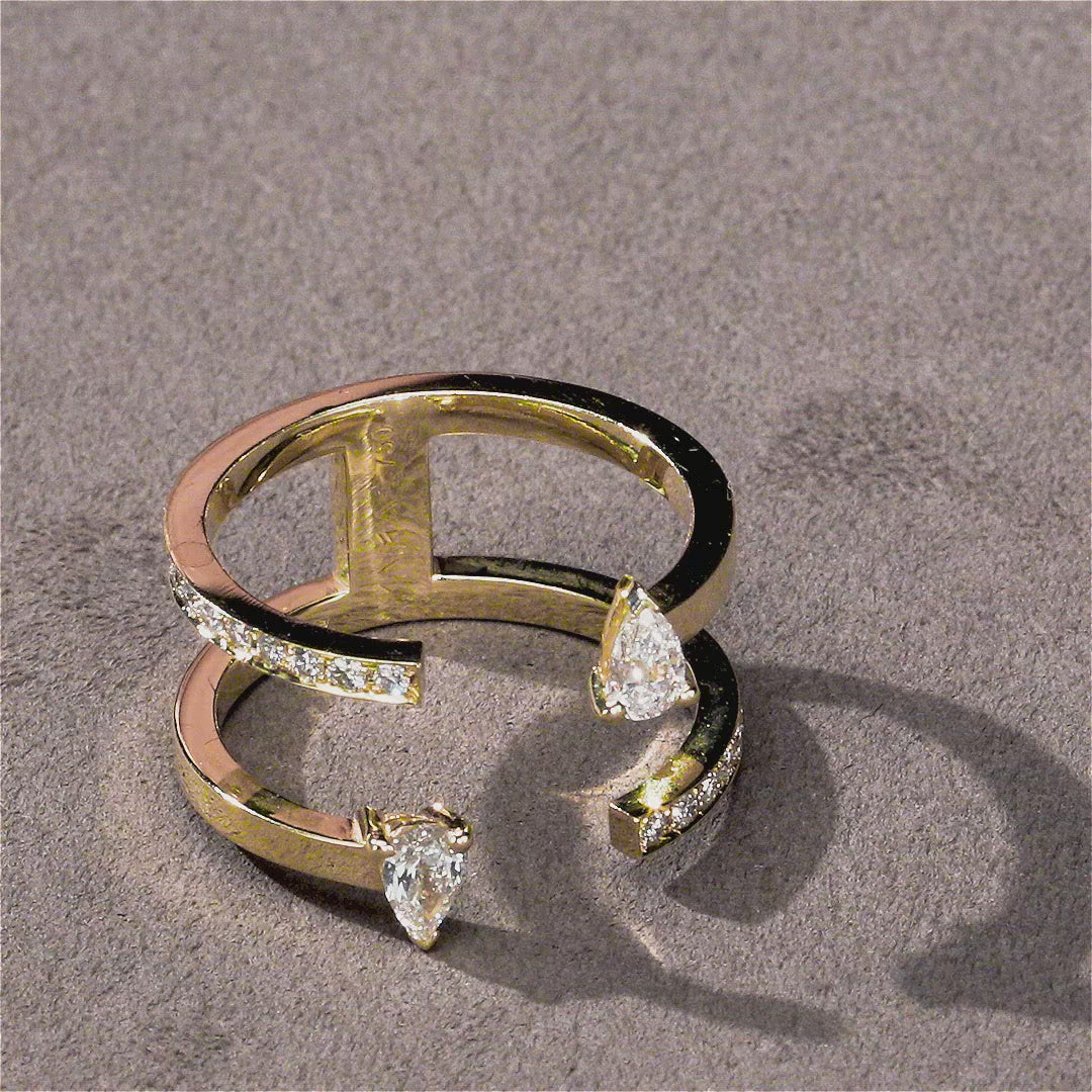 טבעת פתוחה וייחודית, משובצת יהלומי פאווה וטיפות
